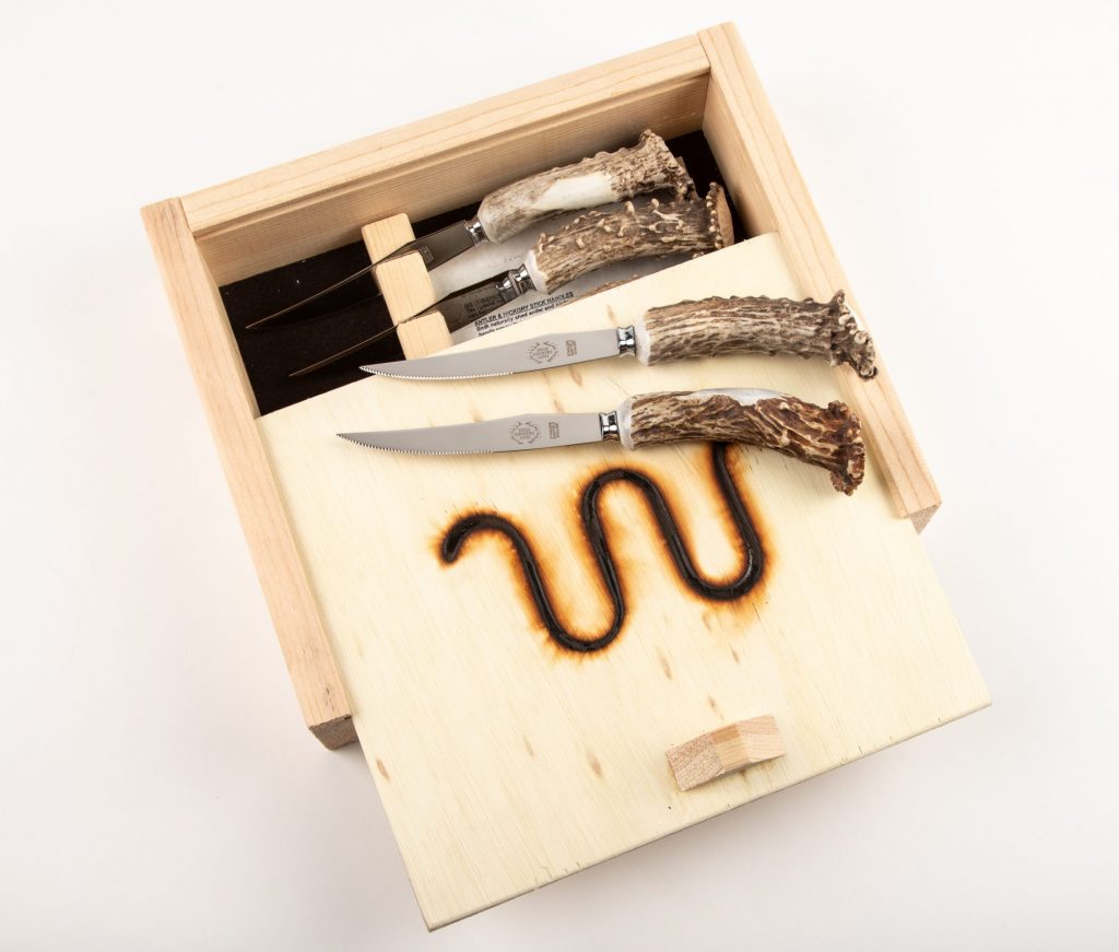 [1] The Urban Cowboy cauldron ($2,299), cowboycauldron.com [2] Bison bronze bottle stopper ($850), santafetrailsfineart.com [3] Antler steak knife gift box ($350), krsaddleshop.com [4] Measuring spoons ($32), westcreation.com [5] Wooden spoons ($12), whiskidesigns.com.