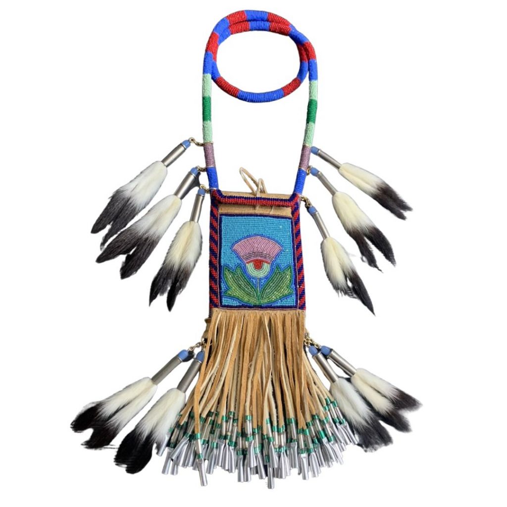 [1] Elias Jade Not Afraid (Apsaalooke) Beaded beck pouch on smoked deer hide with ermine tails ($1,800), ejnotafraid.com [2] Seasons blanket throw ($140), sackclothandashes.com [3] Prados x Lauren Good Day Grand Entry eyeshadow palette ($60), pradosbeauty.com [4] Dreaming of Turquoise mill-made floor rug ($163 – 888), naiomiglasses.net.