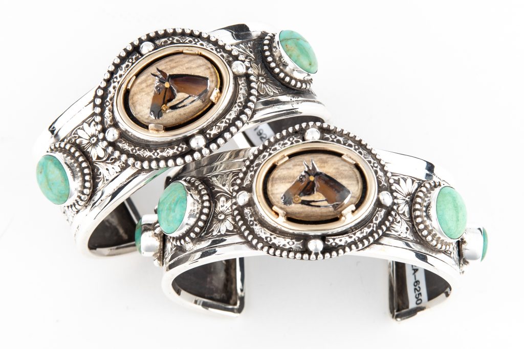 [1] Jack Weekoty (Zuni, Pueblo) vintage Zuni squash blossoms ($8,800), kennethmaxymowichjewellery.com [2] Pictograph and Rip Tides necklace ($355), highdesertcreations.com [3] Montezuma Royston necklace ($359), abilenesky.com [4] Elegant Naja necklace ($860), sylviamedinajewelry.com [5] Tommy Jackson (Navajo) 17 strands coral with Bisbee turquoise ($6,000), richardsontrading.com [6] Western-inspired antler & turquoise wedding set ($500), antlerrings.com [7] Little Gem turquoise sterling silver ring ($600), kirpachbraycletes.com [8] Ben Nighthorse (Northern Cheyenne) Rock Art 18kt gold band ($3,600), sorrelsky.com [9] Empowered bracelet ($100), montanasilversmiths.com [10] PR of Wisdom cuffs ($6,250 each), jill@jillgarber.com [11] Tonopah turquoise bracelet ($655), lauraingallsdesigns.com [12] Rhonda Tahe Largo (Navajo) hand-textured and stamped sterling silver earrings ($475), persimmonhillstore.com [13] Starry Night earrings ($3,600), ferrisjewelry.com [14] Mary Tso (Navajo) Mini Coral Gulch Nana earrings ($235), lanterndancer.com [15] Kingman turquoise pierced ShyAnne earrings ($625), rockigorman.com.