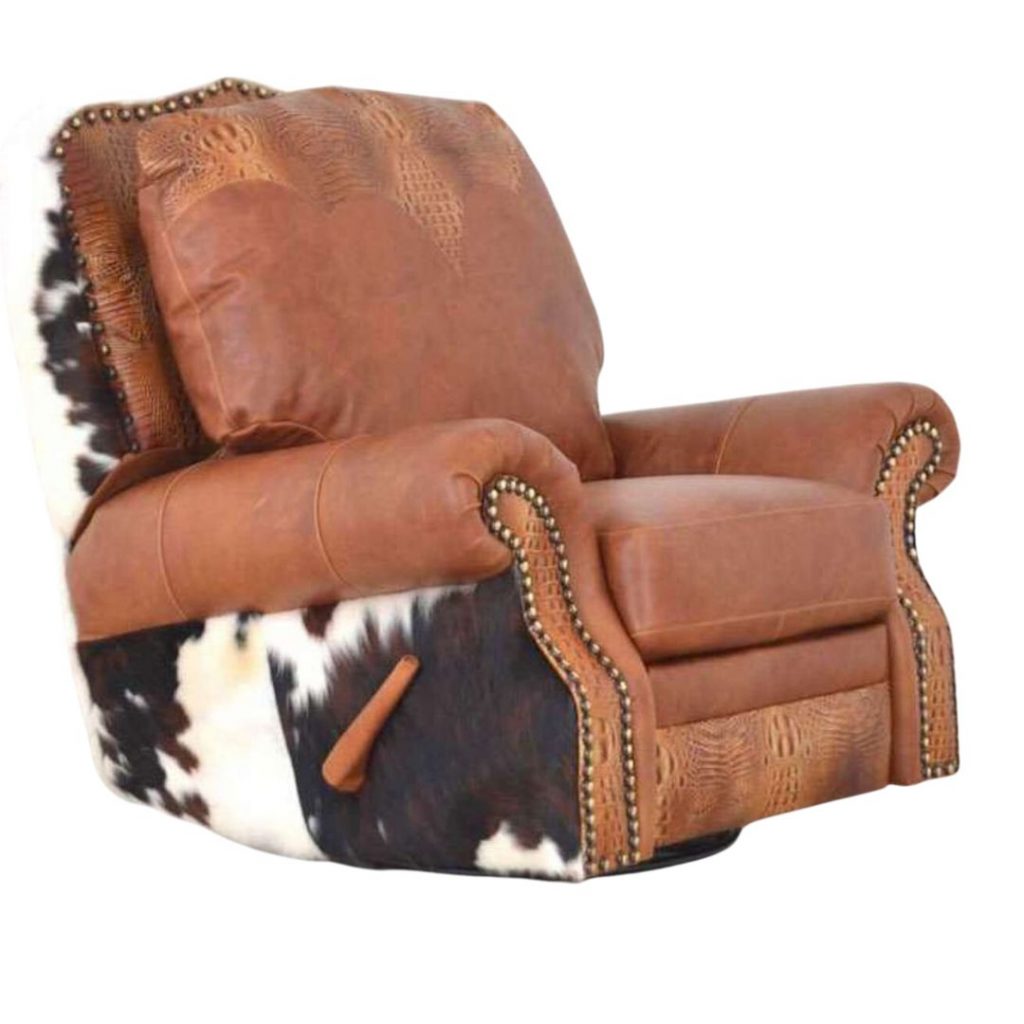[1] Bozeman swivel glider recliner with cowhide and leather ($5,200), ranchandcointeriors.com [2] Aryanna barstool ($1,175), adobeinteriors.com [3] Aspen Eagle chair ($2,599.99), lorecranch.com [4] Ernie Apodaca (Blackfeet) custom hand-made couch ($4,000 – 8,000), ernieapodaca.com [5] Katy 4-cushion conversational sofa ($10,195), hatcreek.us [6] Cowtown sofa (contact for pricing), itwhome.com.