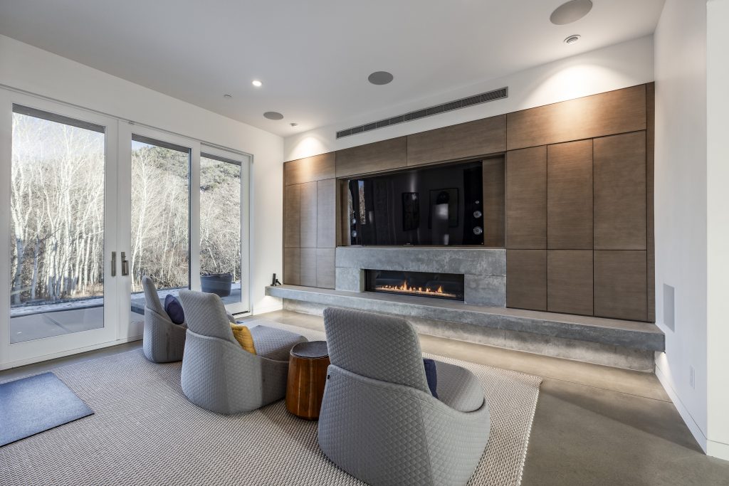Don’t confuse modern architecture and finishes with anything that’s overly cold. This is one very warm house thanks to a multitude of fireplaces and radiant floor heating throughout. There’s also an abundance of cozy bedrooms (and a guesthouse!), a lovely library complete with built-ins and window seat, media room, and artist studio.