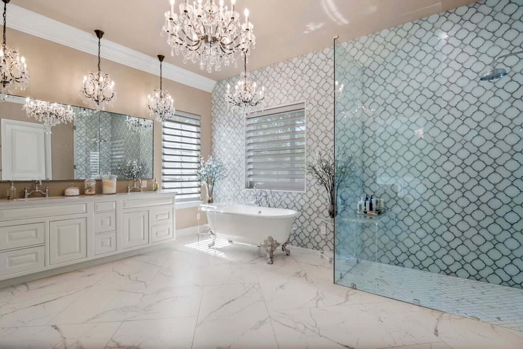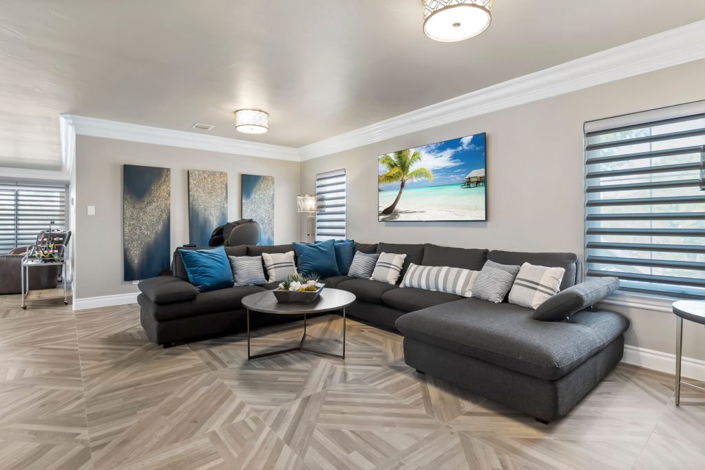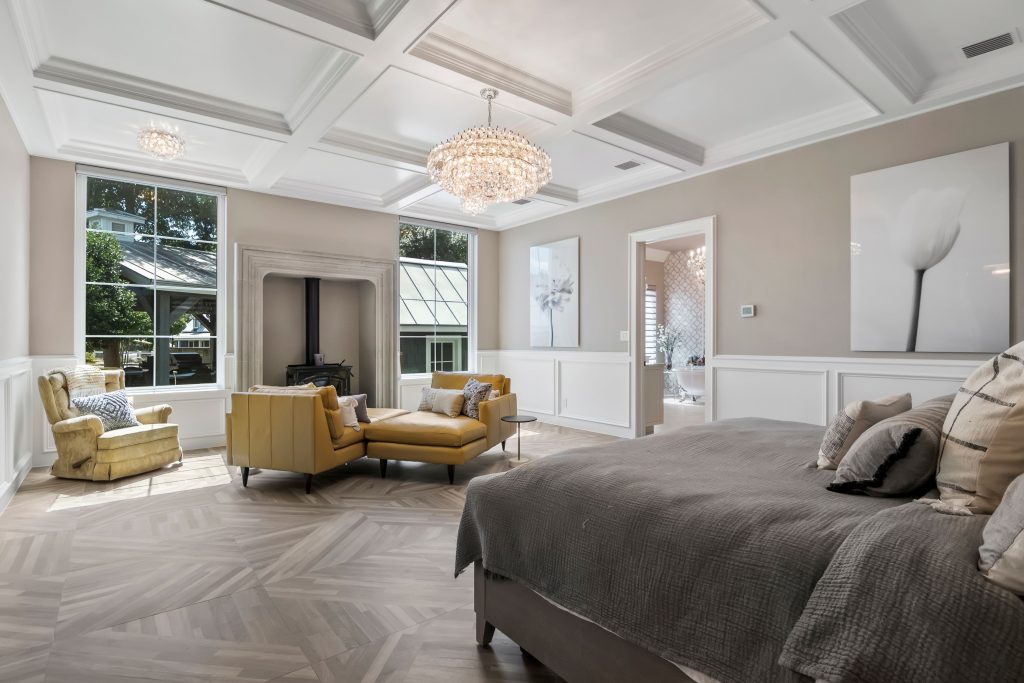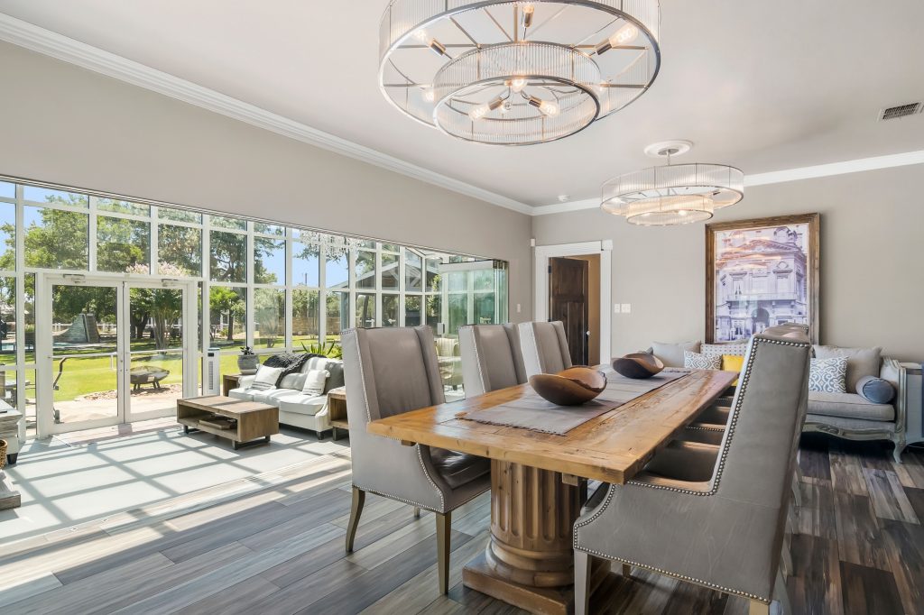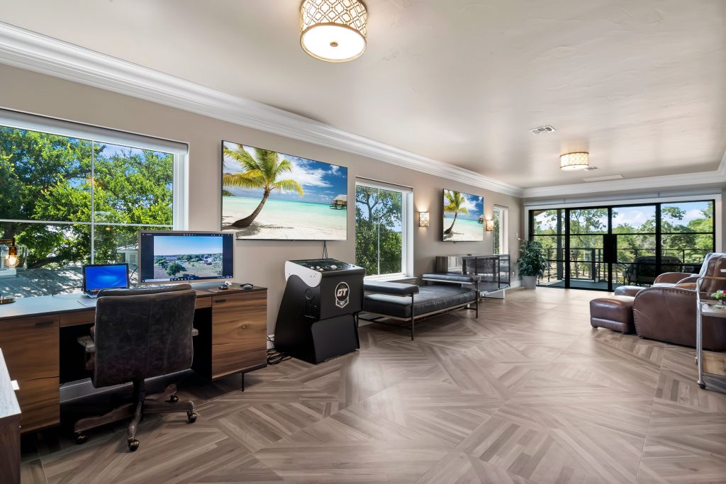 The top-of-the-line amenities aren’t limited to the outdoors. There are plenty of fully customized indoor lounging areas where everyone can dry off and then eat, drink, and be merry in total luxury. Whether you draw straws or assign beds, the fine finishes of each bedroom in the approximately 5,000-square-foot main house, 1,800-square-foot guesthouse, and 1,400-square-foot pool house will ensure no one goes to sleep feeling shorted.