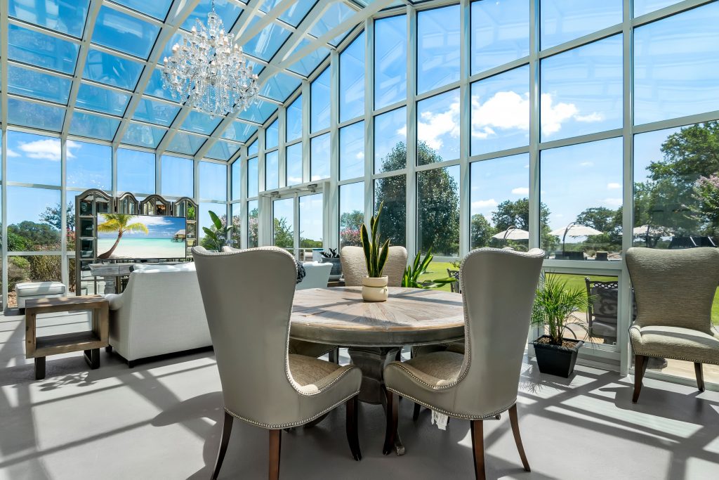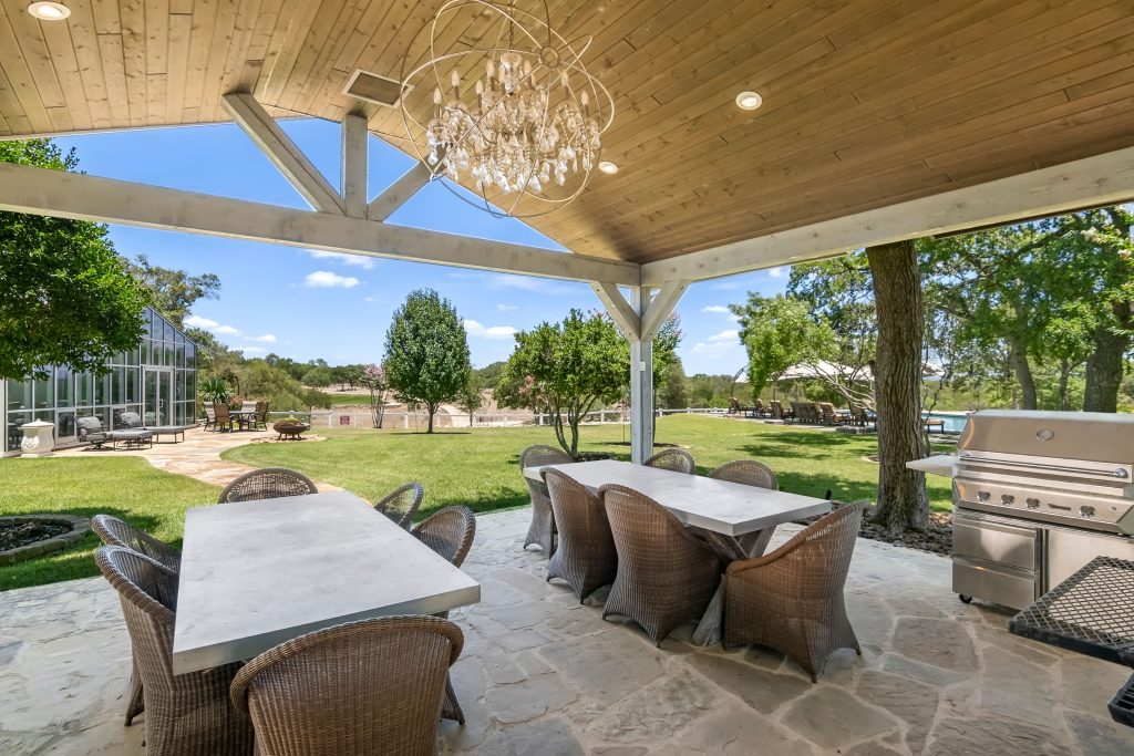 But there’s a reason this place is called the Lazy River Ranch — the exceptional water features. The property includes two custom designed Keith Zars pools for any sort of water fun. Just beyond the grilling gazebo, there’s a Keith Zars Junior Olympic pool perfect for working on your fitness and another Keith Zars rock beach complete with a resortlike lazy river, a fantastic waterfall, lighting, heat, and a swim-up bar. There’s even a custom-built bridge where folks taking a break from swimming can watch you float on by.