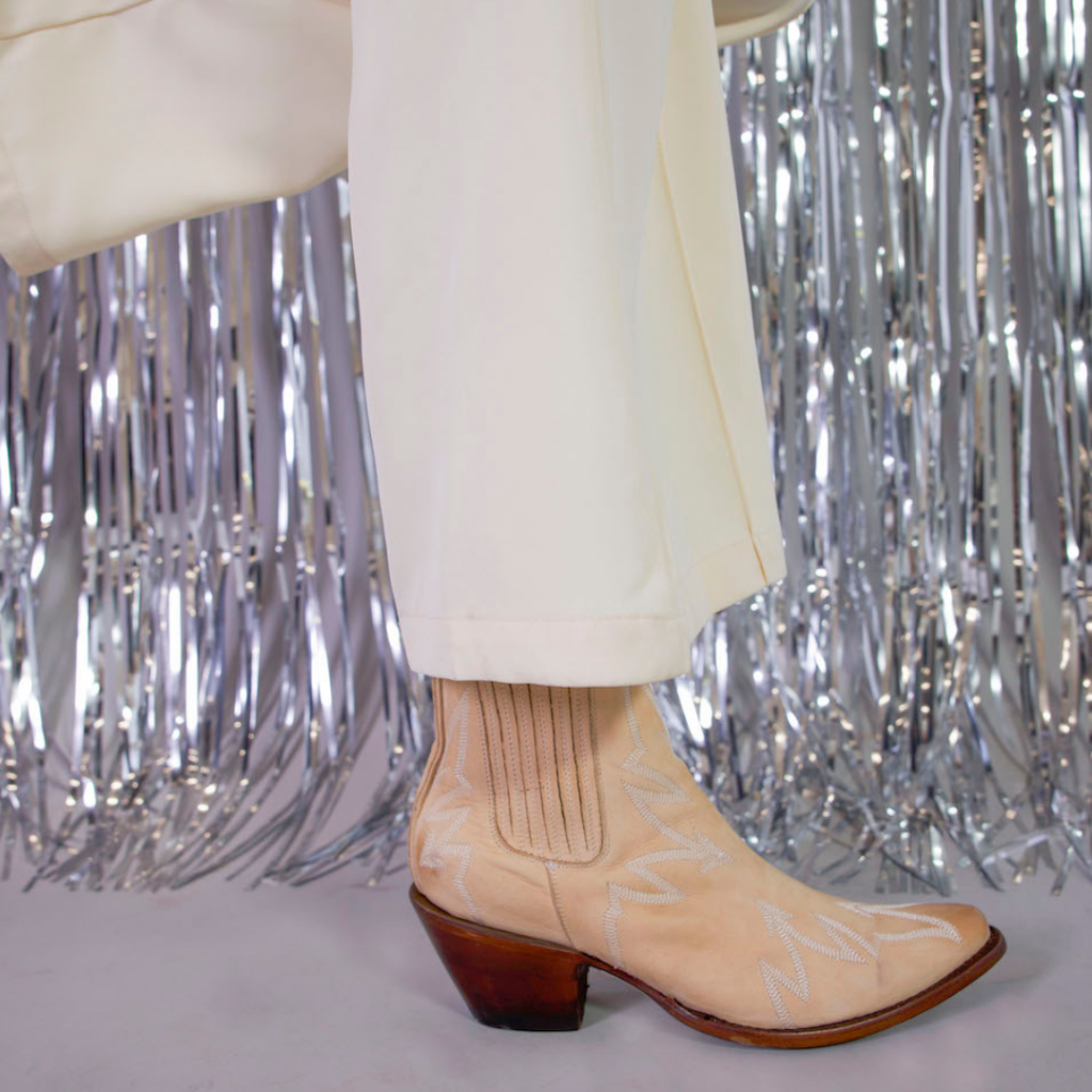 The Reptilia boot has it all. With the neat design of woven leather on the vamp, the distressed white leather, and the classic cowgirl silhouette, this boot is anything but casual, yet not too loud. We have a feeling these boots will be a new regular!