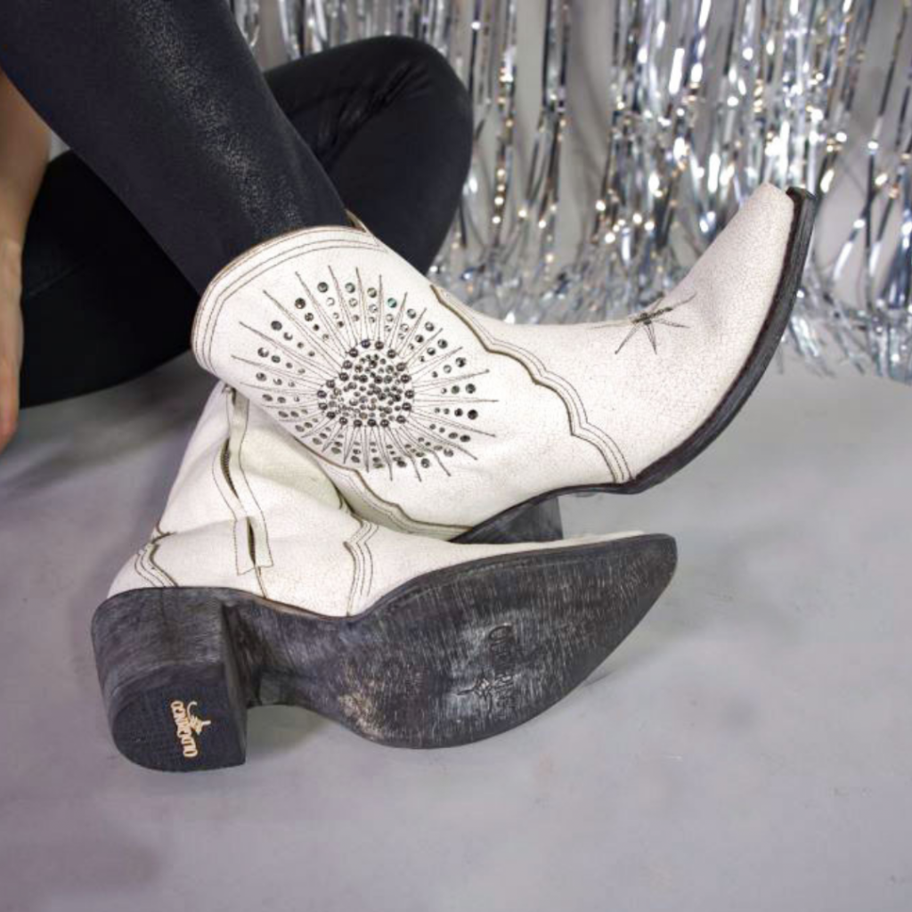 Winter days can lead us to believe it’s too cold to be outdoors and can make most days seem somber. Old Gringo’s winter white collection encourages us to brighten those winter days with radiant whites. Distressed leathers, gleaming rhinestones, lustering stud work, and dazzling embroidery invigorate the style within you.