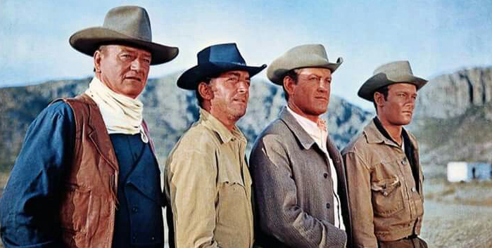 As we noted in our 50th anniversary commemoration, this fan favorite was the first film John Wayne made after his life-saving 1964 cancer operation: “Wayne remained every inch the thoroughgoing professional throughout the arduous production of The Sons of Katie Elder (1965), determined to prove that he had indeed ‘licked the Big C’ and was back in the saddle, literally as well as figuratively. If he ever resented [director Henry] Hathaway’s demanding drill-sergeant style of directing, he chose not to hold a grudge — and, just four years later, gladly re-teamed with the director for True Grit (1969), the movie for which he won his only Academy Award for Best Actor. Some biographers have theorized that The Sons of Katie Elder was an invaluable boon to John Wayne, in that it convinced him that working hard at what he did best was the way to continue cheating death. Such armchair psychology is usually of dubious value while taking the measure of any man. But in Wayne’s case — well, maybe there is something to the notion that there’s nothing like a brush with death to reignite one’s work ethic.”