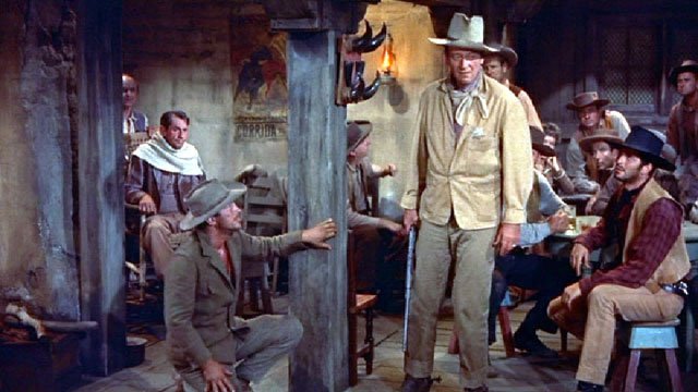 If the plot of El Dorado (1967) seems a tad familiar, well it should — director Howard Hawks more or less recycled it from Rio Bravo (1959), and then re-recycled it for Rio Lobo (1970). But never mind: As often is the case with a John Wayne western, the storytellers, not the story, are what really matter here. As critic Roger Ebert noted in his original review: “Wayne plays a professional gunman who comes to town to take a job from a rich rancher who wants a poor rancher’s water (who says the plot has to be original?). But the sheriff turns out to be his old buddy, [Robert] Mitchum, and so he turns down the job. Then the rich rancher hires another gunman (Christopher George), and Wayne sides up with the drunk and disheveled Mitchum. Duke’s team isn't exactly made of heroes. Robert Mitchum has been hitting the bottle for two months, his deputy (played with charm by [Arthur] Hunnicutt) is a windy old Indian fighter, John Wayne has a bullet near his spine that causes a slight touch of paralysis now and again, and his sidekick ([James] Caan) is a kid who carries a shotgun instead of a pistol because he’s such a lousy shot. Hawks fashions scene after scene of quiet, earthy humor from this situation. Without great care, the movie could have degenerated into a put-on, but Hawks plays it straight and never allows his actors to take that last fatal step in overacting.” Movie buffs, take note: Listen closely, and you’ll hear a sly reference to Shoot the Piano Player, the 1962 film by Francois Truffaut, the great French filmmaker who, during his days as a critic, championed Hawks’ films long before many U.S. critics did.
