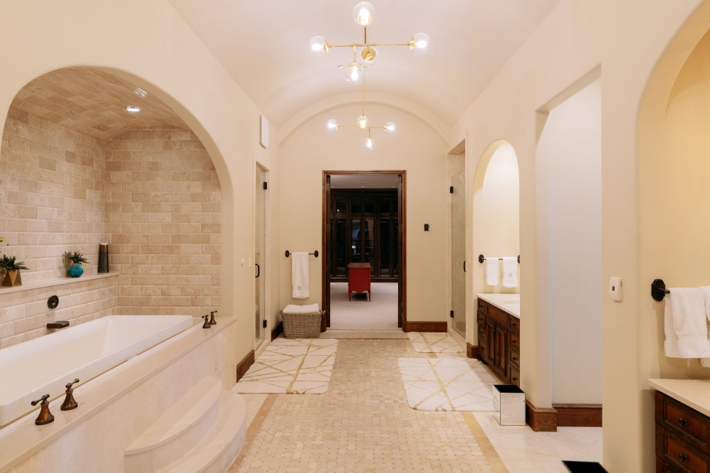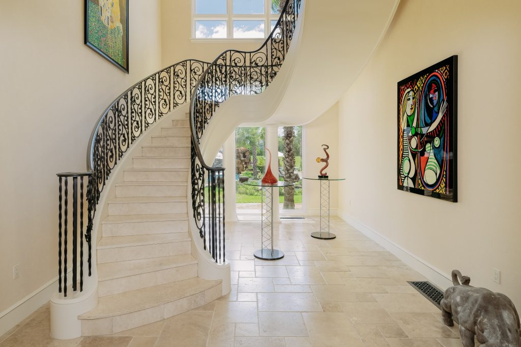 Of course, no world-class athlete would put up with second-string grounds, and these do not disappoint. Tastefully scattered over the 50-plus acres are a tennis court, sand volleyball court, greenhouse, herb garden, fruit orchard, and a 5,922-square-foot gym. There’s also a water feature that has to be seen to be believed: It’s one of the largest private waterparks with speed/body slides, lazy rivers, grottos, and a diving platform.