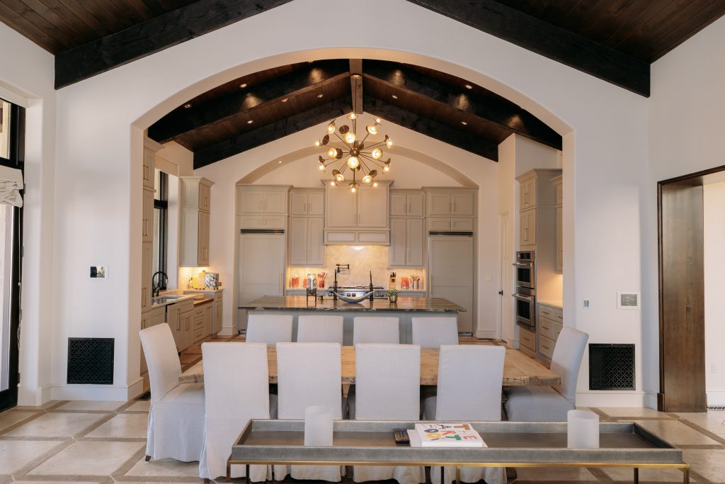 When people on your guest list make it past security, they’ll be invited into a sleek, well-designed home outfitted with floor-to-ceiling windows, large living spaces with soaring ceilings and massive fireplaces, a grand dining room, well-appointed chef’s kitchen, impressive home theater, and 1,500-bottle wine room with dedicated magnum storage.