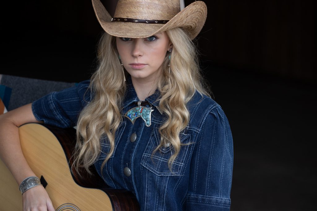 Carlsbad straw hat, outbacktrading.com; Verde Valley turquoise earrings, lauraingallsdesigns.com; Ben Nighthorse (Navajo) Head of a Horse pendant, sorrelsky.com; South Rim cuff, vogtsilversmiths.com; Denim short-sleeved jacket, doubledranch.com; Idyllwind floral drive jeans, bootbarn.com; Victoria tan boots, blackstarboots.com.