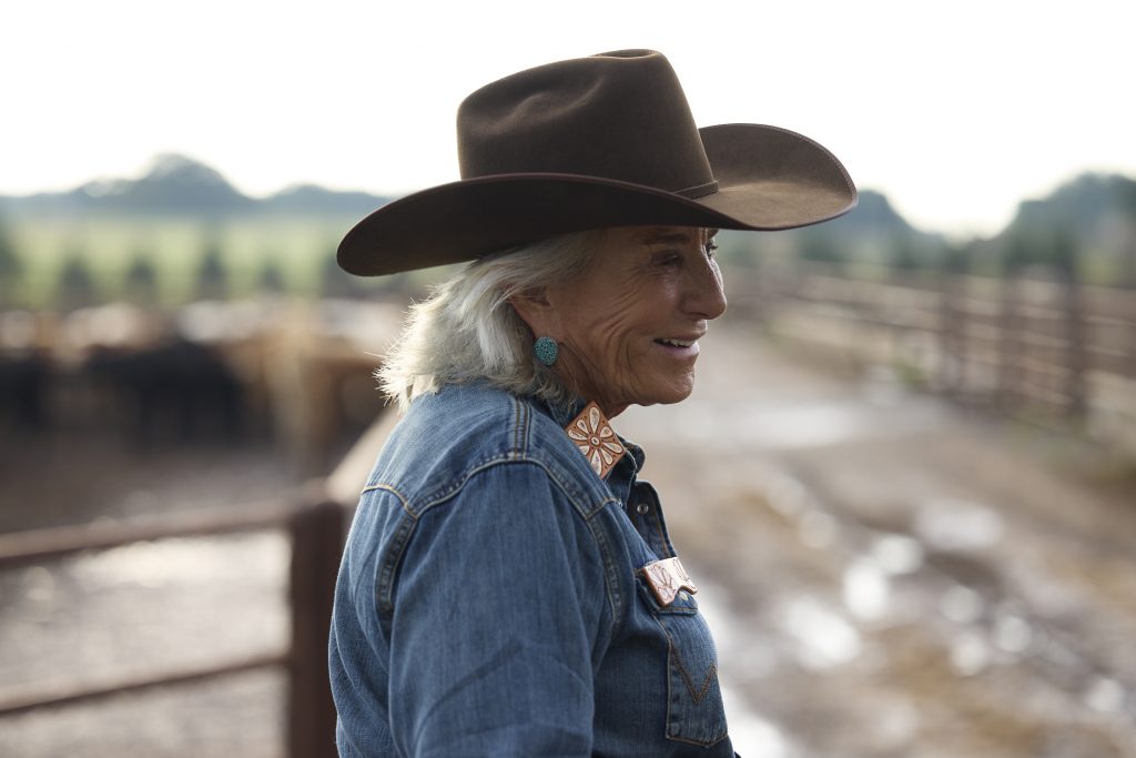 Custom Shorty hat, shortyshattery.com; Kingman Rose earrings, robshermandesigns.com; Showstopper denim shirt, mcintiresaddlery.com; Belt, buckle, Haala jeans, chaps, and Rios of Mercedes boots (Lindy’s own).