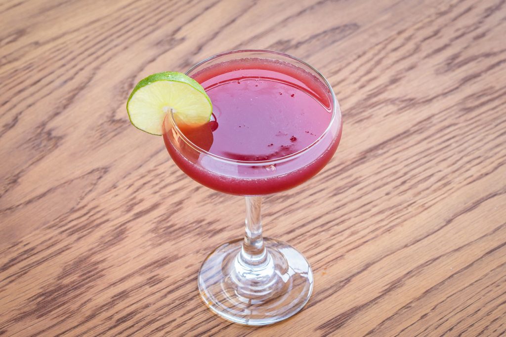 Combine all ingredients in a tin shaker and shake. Pour into coupe glass, and garnish with lime wheel.
