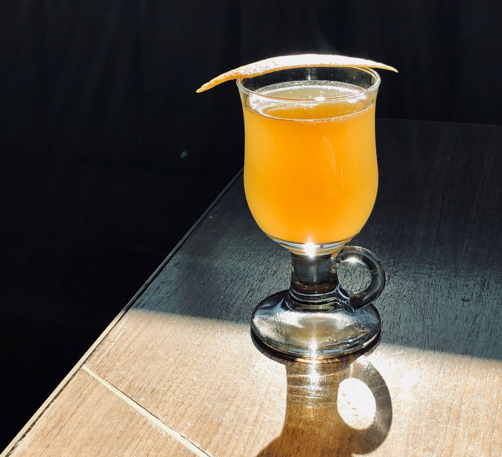 Mix ingredients in a pre-warmed toddy glass. Twist orange peel over glass, rub interior part of the peel along the glass’ rim and garnish.