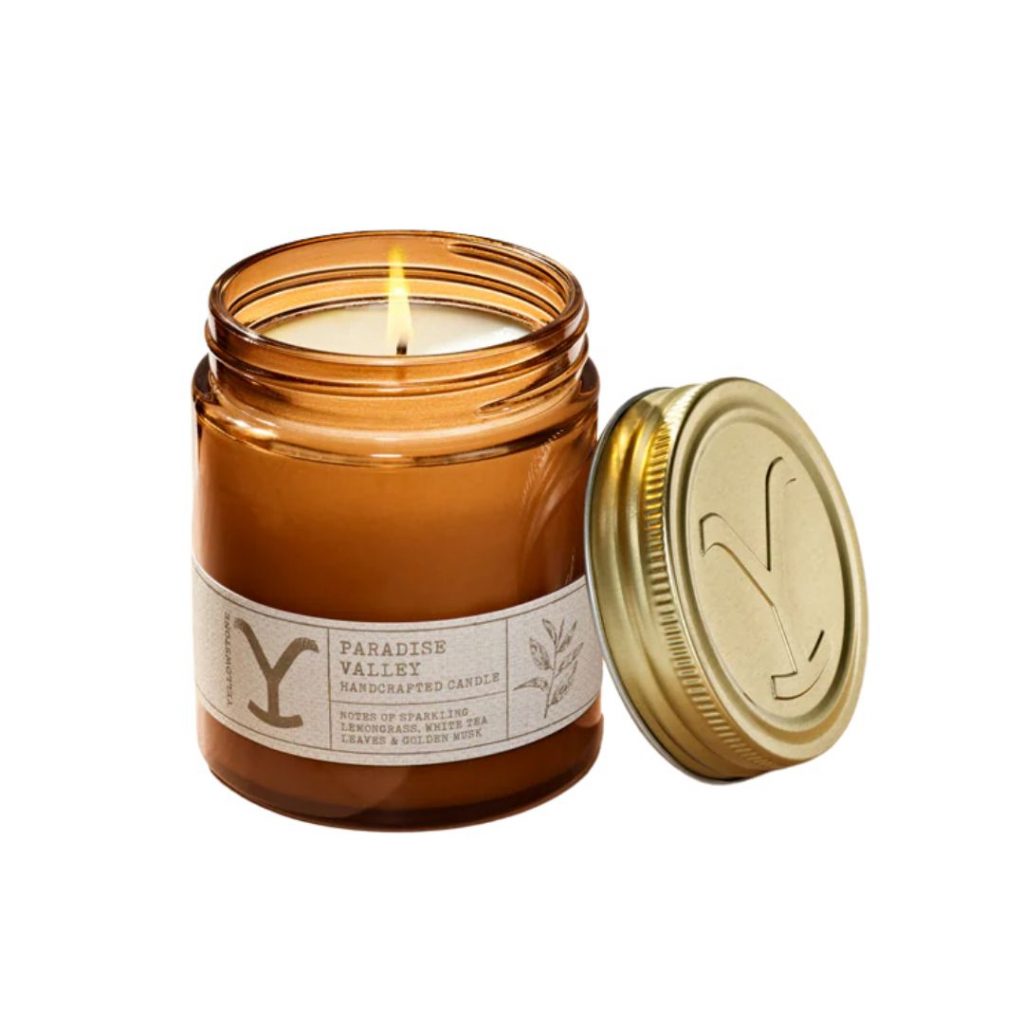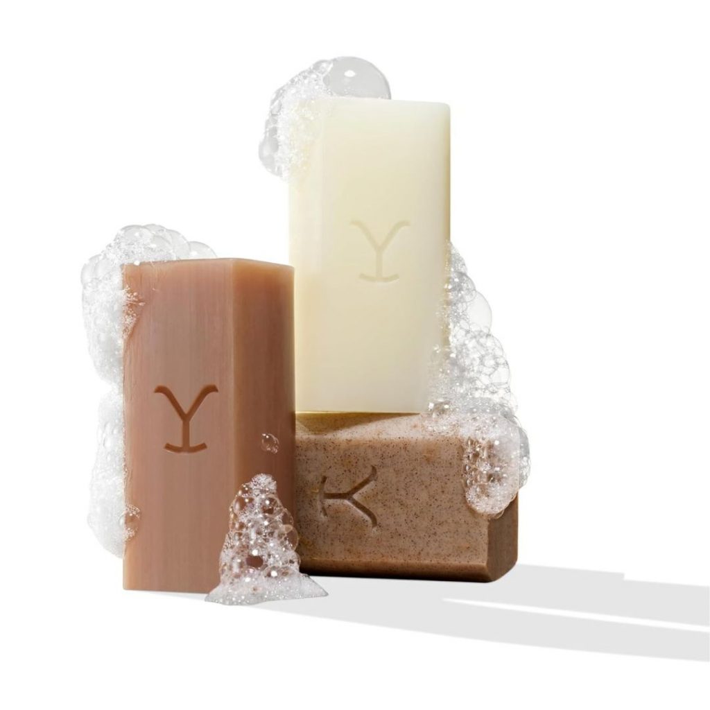 [1] Saddle leather branded coaster set, $34, Shop The Scenes, shopthescenes.com; [2] Yellowstone Paradise Valley Candle, $25.40, Tru Western, truwestern.com; [3] Dutton Ranch Door Mat, $59.99, Gertmenian, wayfair.com; [4] Yellowstone Ranch Kitchen Towel, $19.95, Yellowstone Shop, yellowstonetvshop.com;[5] Yellowstone Bunkhouse Soap Bar Bundle, $26.40, Tru Fragrance, amazon.com.