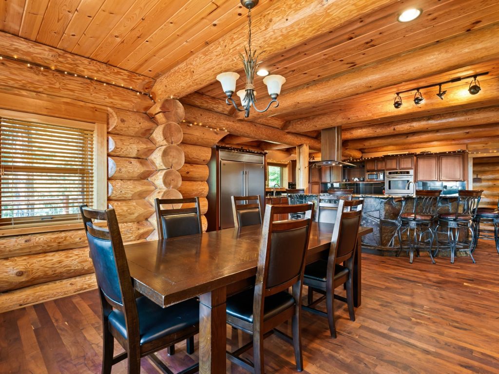There’s nothing quite like kicking back in a log cabin. But let’s say you’re the kind of person who’s looking for rest and relaxation in something a little extra. Allow us to introduce you to the Log Castle. More is definitely more at this sprawling 9,100-square-foot, five-bedroom, seven-bathroom abode, starting with the fine craftsmanship and materials that include more than 20 types of different wood throughout and beautiful stone on the great room’s grand fireplace.