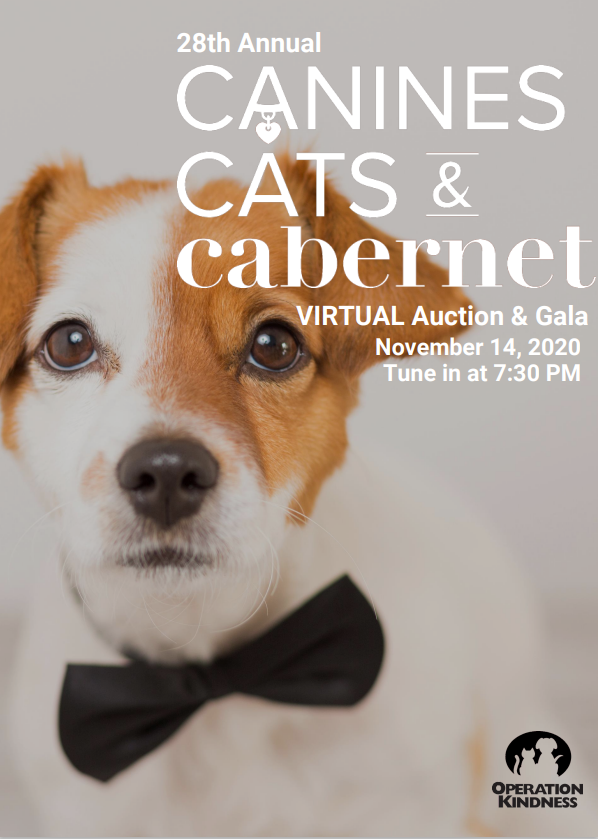 Operation Kindness is hosting the 28th Annual Canines, Cats and Cabernet VIRTUALLY on November 14, 2020. Canines, Cats and Cabernet is the shelter’s largest fundraising event of the year which enables them to help animals in need of life-saving medical care, companionship, and most of all, a forever home. Guests will “party in place” while supporting the homeless pets of North Texas and will be bidding on the animal organization’s live and silent auction from the comfort of their home. We may not be able to gather in person, but the animals are still in need of support; the generosity provided by the community will continue to provide lifesaving care to pets in need.