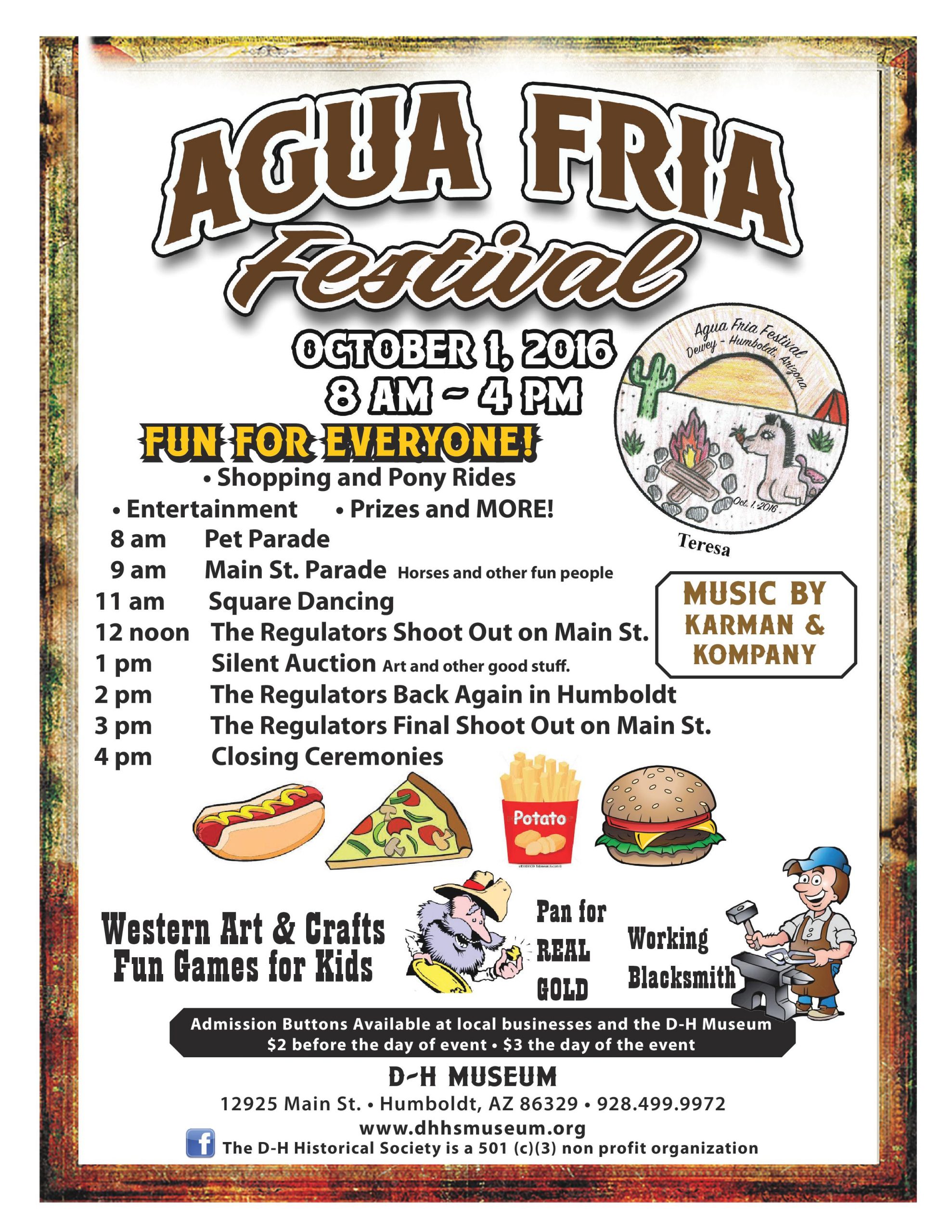Arizona's Oldest Street Festival, first held in 1907. Parades, Vendor Booths with Western Arts & Crafts, Food Vendors, Silent Auction, Shoot Out on Main Street, Blacksmith, Pan for Gold, Square Dancing, Kids Games and much more. All proceeds support the Dewey-Humboldt Historical Society and the Museum, a non-profit 501(c)3 organization.