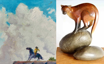 Essential Visions showcases small works by painter John Farnsworth and sculptor Michael Tatom that range in theme from wild days to wild cats. Each artist imbues his work with the essential information for the viewer to ‘see’ the world through the artist’s eyes. Farnsworth’s gestural oil paintings offer portrayals of life in the West and Tatom’s bronze sculptures present elegant, stylized animal forms. Michael Tatom will be present. Show continues through March 30.